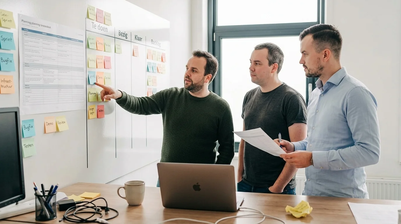 Wij werken in korte sprints zodat je snel resultaat ziet. Door regelmatige demo's en feedback loops zorgen we dat de software precies wordt wat je nodig hebt.